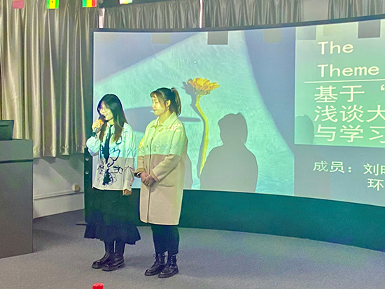 环境设计专业刘晓菲、刘倩作题为《基于“适应心理”浅谈大学生的生活与学习》主题演讲