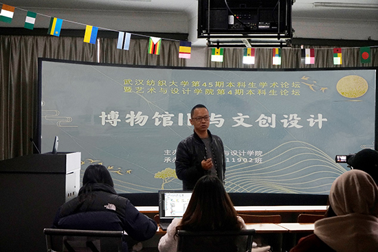 第四期本科生论坛在我院学术报告厅405举行。本场论坛主题为“博物馆IP与文创设计”,由我院视觉传达设计专业承办,系主任黄龙飞主持,副院长曹刚出席,学院各系部教师代表和视觉传达设计专业本科生参加了论坛。