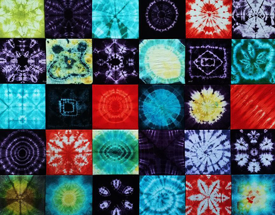 组合作品《万华镜》 工艺美术11901、11902班 150cmX125cm 手工扎染