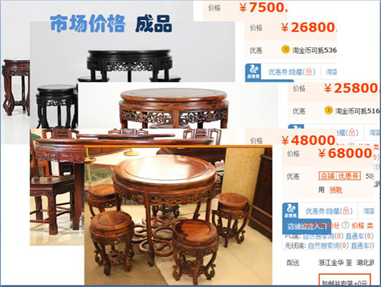其次,对酸枝木红木家具的生产工艺做了详细介绍,并结合市场对不同材质的红木家具价格进行梳理;