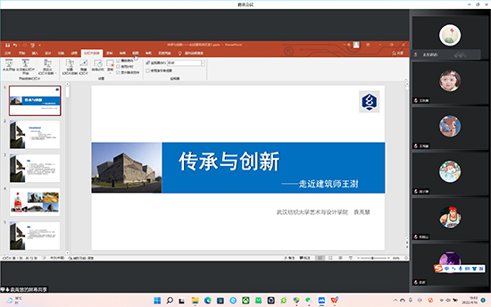 环境设计系举办了“设计&审美”系列线上艺术沙龙座谈会,本次主题为“传承&创新”,主讲人为环境设计系副教授袁禹慧老师。