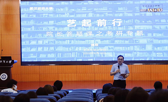 在南湖校区尚美楼T201教室举办“艺起前行”院长答疑课。院长傅欣、副院长刘凡、学院党委副书记刘福金及2019级考研学生参加本次活动,活动由副院长刘凡主持。