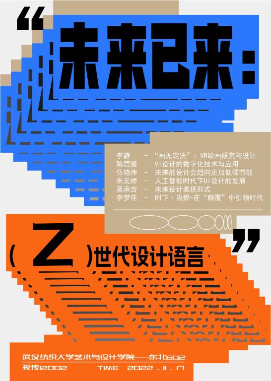 第9期本科生论坛在艺设楼东北602进行。此次论坛以“未来(Z)世代设计语言”为主题,班内的李静、陈思昱、伍艳萍、朱美婷、莫承吉、李梦佳等6名同学分别围绕自己的专业实践与学习成果作交流分享,学院李朔老师应邀出席论坛并作专业点评。