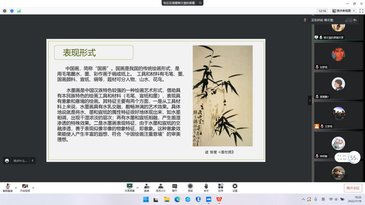 肖媛媛同学作题为《喜迎二十大》喜迎二十大,丹青送清风的主题报告