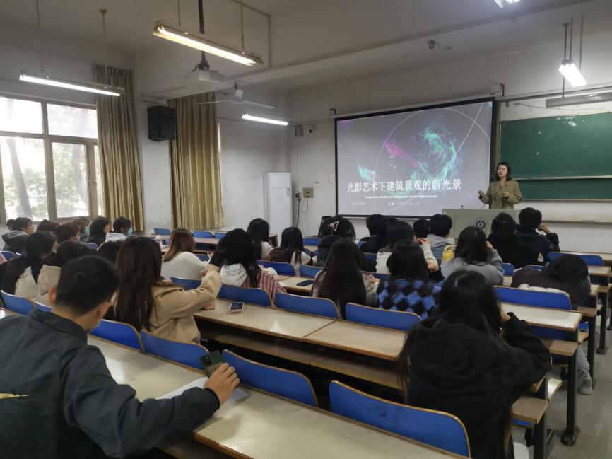 在南湖校区综合楼208教室举办第11期本科生学术论坛,论坛的主题为“光影艺术下建筑景观的新光景”。本次论坛由班主任陈茜茜主持,主讲人为武汉理工大学设计学博士周梦烨。