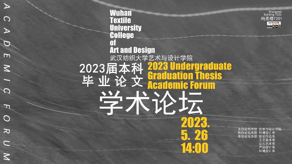 在南湖校区T201举行2023届本科毕业论文学术论坛。环境设计系主任邱杰教授、产品设计系主任关艳教授、公共美术系主任鄢章民、秦栗教授、伍云秀教授担任论坛评委,副院长刘凡主持论坛。2019级各专业学生代表参加活动。