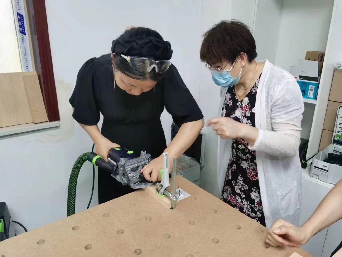 在南湖校区木工实验室开展设备使用培训和教学研讨。副院长刘凡、相关专业教师、实验室全体教师参与培训和研讨。