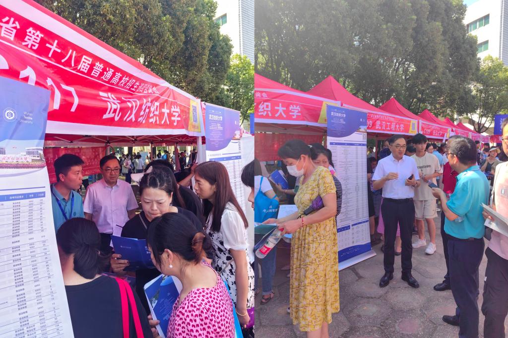 展位前围满了前来咨询的家长和学生。傅欣为一些家长解答问题、介绍专业,并向现场的招生代表了解招生宣传情况,对他们表示慰问。