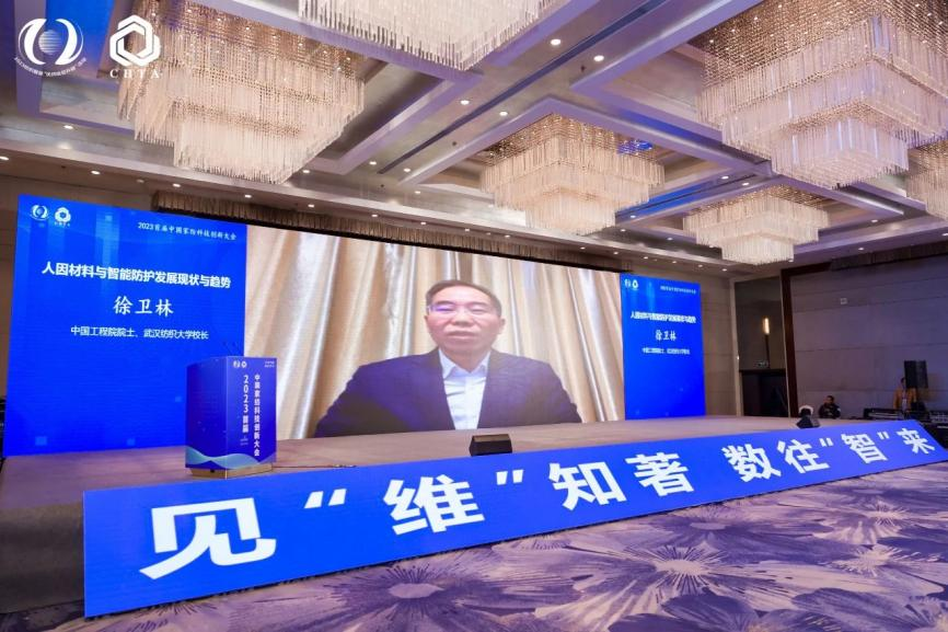 校长徐卫林以视频形式作了《人因材料与智能防护技术发展现状与趋势》的主旨演讲。他指出,人因材料工程和智能防护技术在纺织领域的广泛应用,纺织产业正朝大纺织、超纺织和现代纺织的方向发展。这一趋势倚赖自动化和信息化技术的支持,预示着纺织行业在大健康和智能穿戴等领域有着广泛的发展前景。智能防护技术以人因工程为基础,可以广泛应用于健康纺织品、健康监测、疾病预警和安全领域,智能穿戴纺织品的应用也在娱乐、运动、医疗保健等领域探索中,为产业带来新机遇。