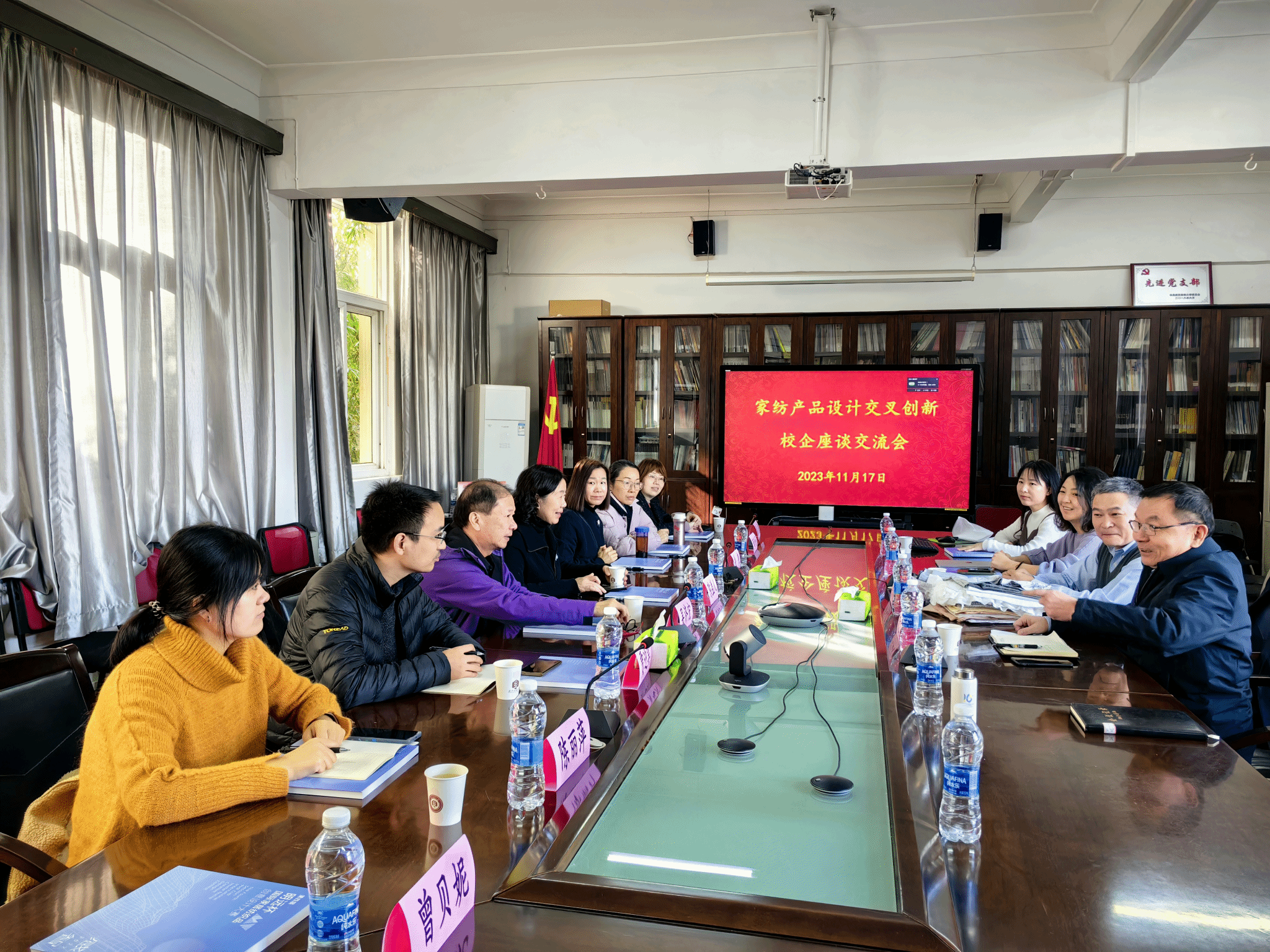、纺织学院、材料学院的教师代表们就面料图案设计、功能面料开发、家纺产品面料工艺等方面进行了深入交流和热烈讨论。