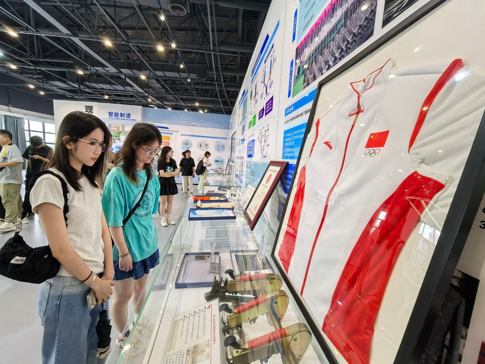 参观过程中,同学们认真听取讲解,仔细观摩学习,从一张张经典的照片、一段段详实的文字、一件件珍贵的实物中重温纺织科技的辉煌历程与学校的卓越成就,深切地感受到了纺织的历史、科技、文化和学校的发展历程及精神传承。