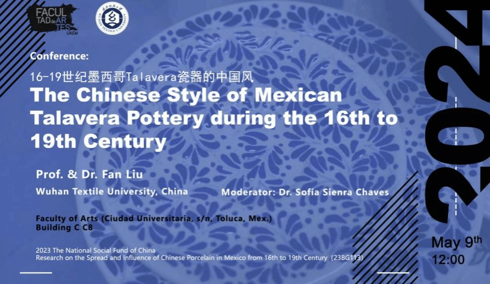 刘凡教授,应墨西哥州立自治大学之邀,成功开展了题为《16-19世纪墨西哥Talavera瓷器的中国风》的学术报告讲座。此次讲座的内容为刘教授去年国家社科基金艺术学项目《16-19世纪中国瓷器在墨西哥的传播与影响研究》的阶段性成果,讲座不仅加深了中墨两国在艺术与设计领域的学术交流与合作,更受到了中华人民共和国驻墨西哥大使馆及新华社的高度关注。