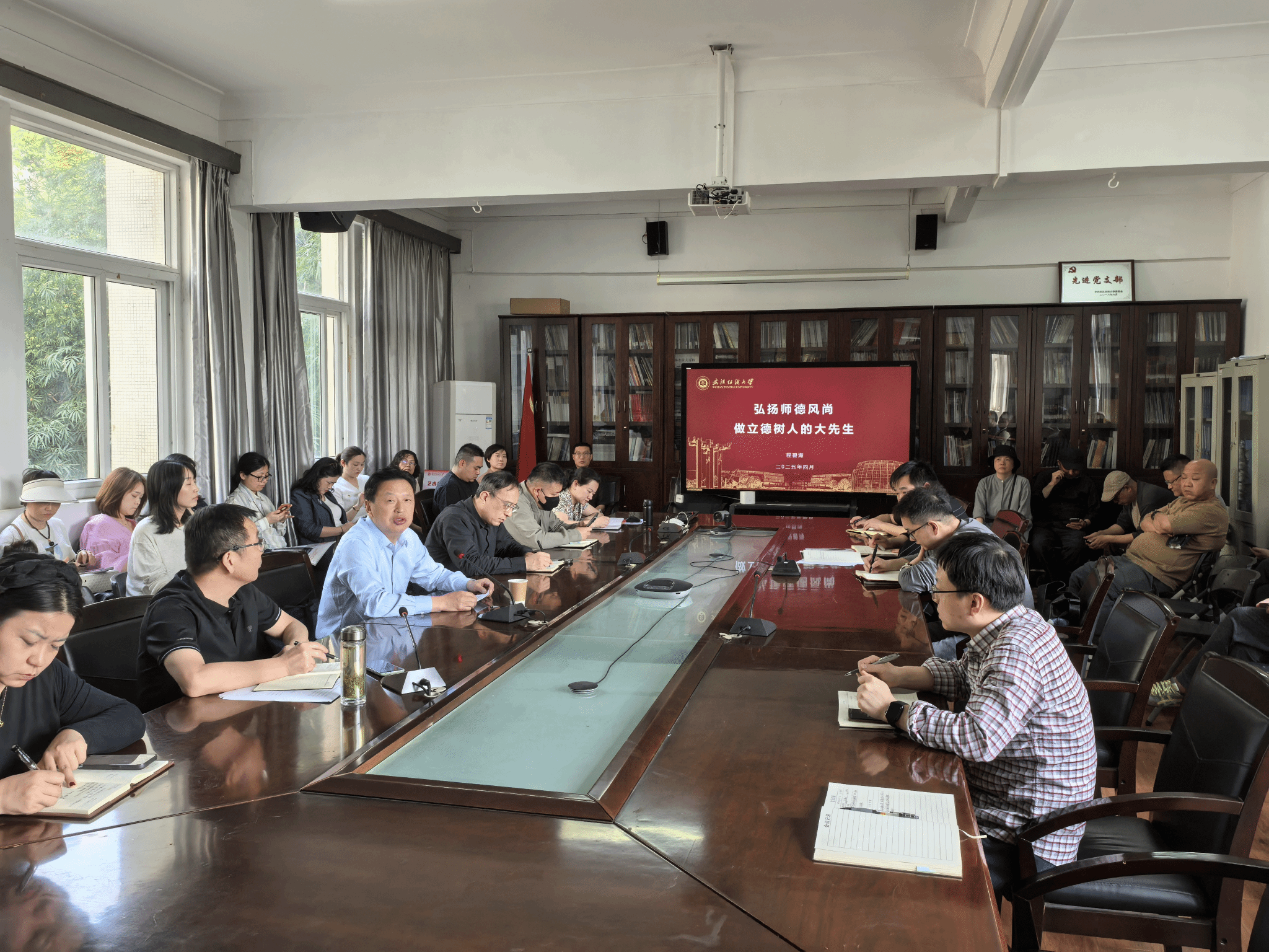 做《弘扬师德风尚 做立德树人的大先生》师德师风专题报告,全体教职工参加学习,学院党委书记刘元文主持报告会。