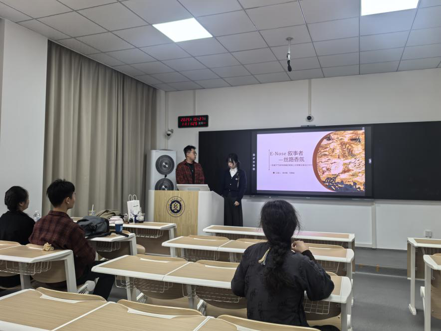 研1907班刘栗延、柴诗雪同学以丝绸之路文化为题材,聚焦于智能气味穿戴设备的创新设计。研究紧扣多感官沉浸式体验的趋势,通过提取丝路文化符号,开发出“丝路香氛”沉浸式体验产品。该设计将设备作为文化的可感知载体,运用科技赋能非遗的活态传承,为年轻群体提供了感知丝路魅力的新颖方式,响应了以创新设计弘扬中华优秀传统文化、建立文化自信的时代要求。