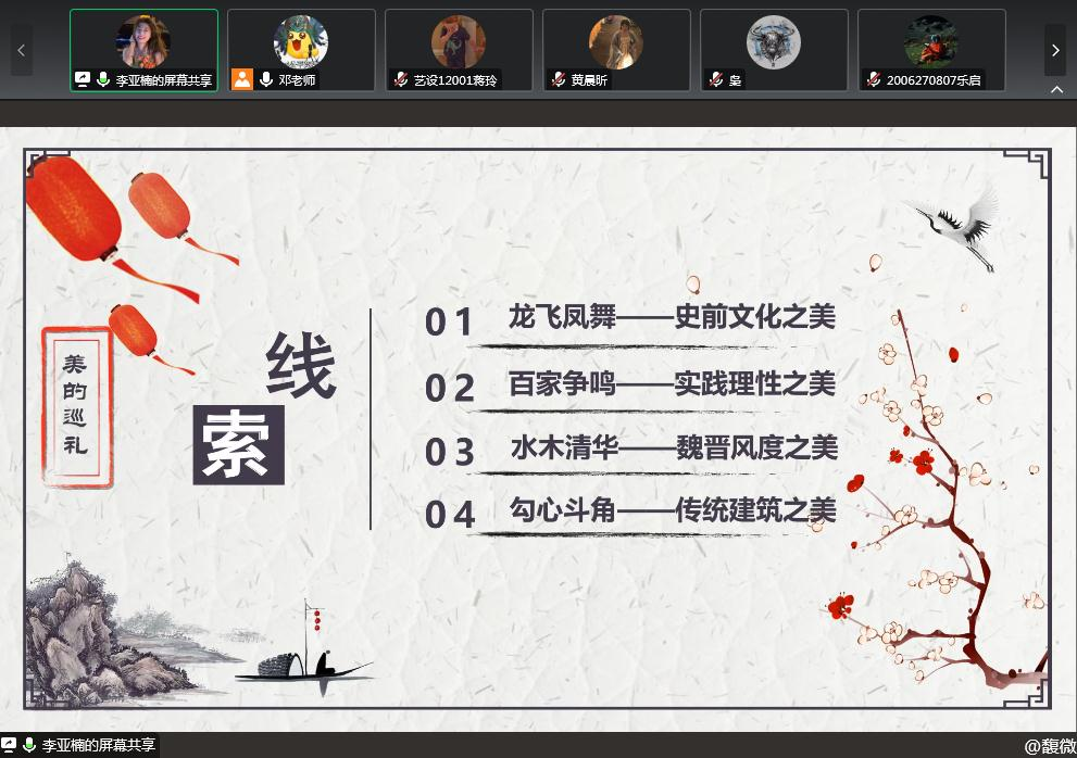 设计学12001班以线上会议的方式举行了本科学术沙龙,邓桂芳老师主持本次活动。