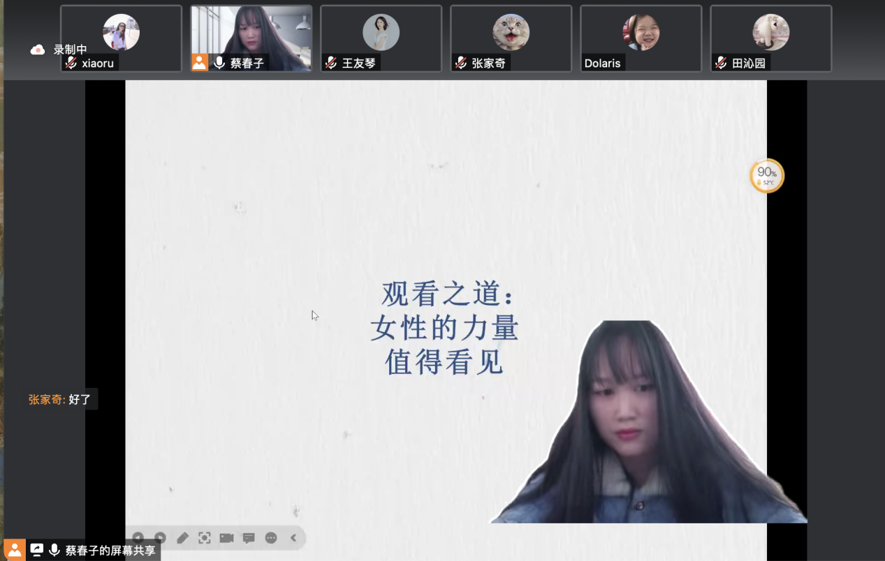 在讲授的过程中,杜晓茹老师还组织了讨论环节,同学们与老师积极互动,并以女性的存在发展史进行了深入的讨论。我院研究生积极参与了讨论与分享,如:蔡春子同学关于女性的力量值得看见的主题,通过女性的观看与被观看,引发了女性在不同时期的对自我的思考,并结合“裸体”和“裸像”的分析,让我们也了解到以往女性人格容易被忽视,而随着社会的发展,女性的地位也逐渐在提高,现当代不论女性处于何种地位,我们都要以积极的心态来对待生活。