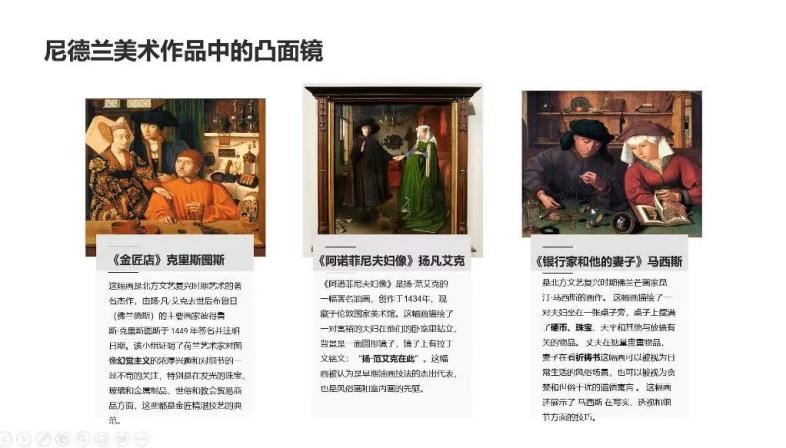 在交流讨论环节中,张老师与与会教师和研究生进行了深入地交流和探讨。例如21级研究生天沁园就“15 世纪尼德兰文艺复兴宗教题材画对传统的突破”为题分享了她对15世纪尼德兰的艺术的看法;22级研究生张家奇则以“画中之镜:尼德兰美术中凸面镜的应用” 为题对尼德兰艺术作品中的凸面镜作了详细的分析。
