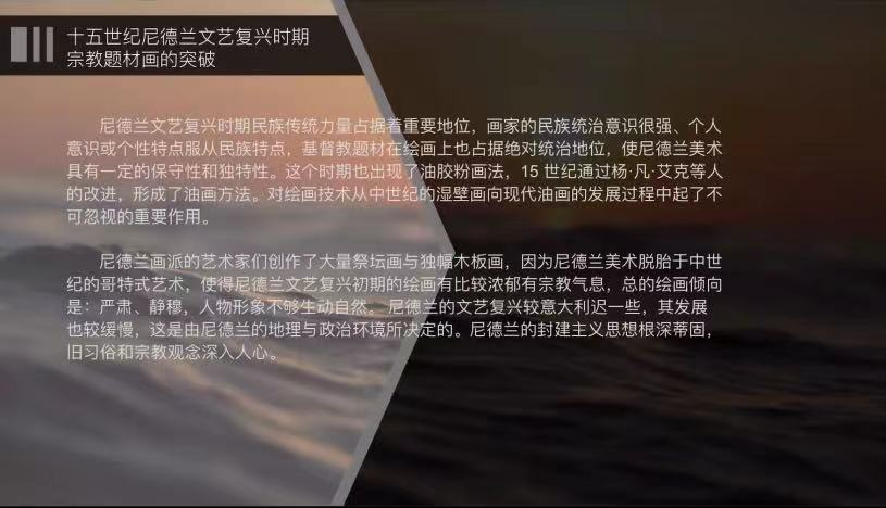 2021级研究生田沁园以《探析 15 世纪尼德兰文艺复兴宗教题材画对传统的突破》为题对15世纪尼德兰的艺术进行了分析汇报