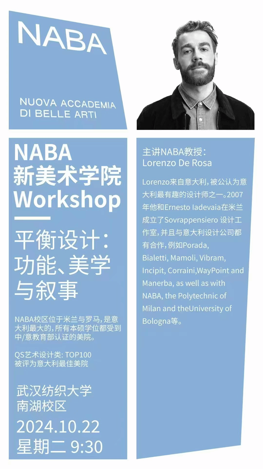 在学院二楼会议室举行专题讲座,本次讲座由欧洲著名新锐设计师、NABA新美术学院教授Lorenzo De Rosa进行主讲,副院长曹凯、美术系主任严珺、师生代表参加活动。