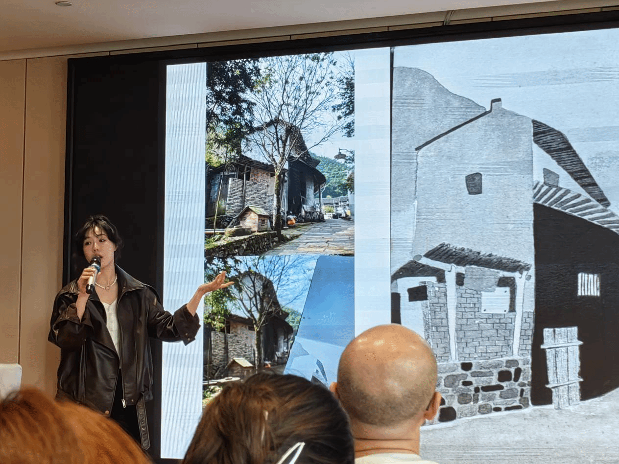 王正莹进行了题为《从具象到抽象》的讲座,她以婺源古村为样本,示范了具象元素解构、符号重组与肌理转化的创作过程。通过投影案例对比,引导学生探索视觉语言的无限可能,理解具象到抽象的内在逻辑。
