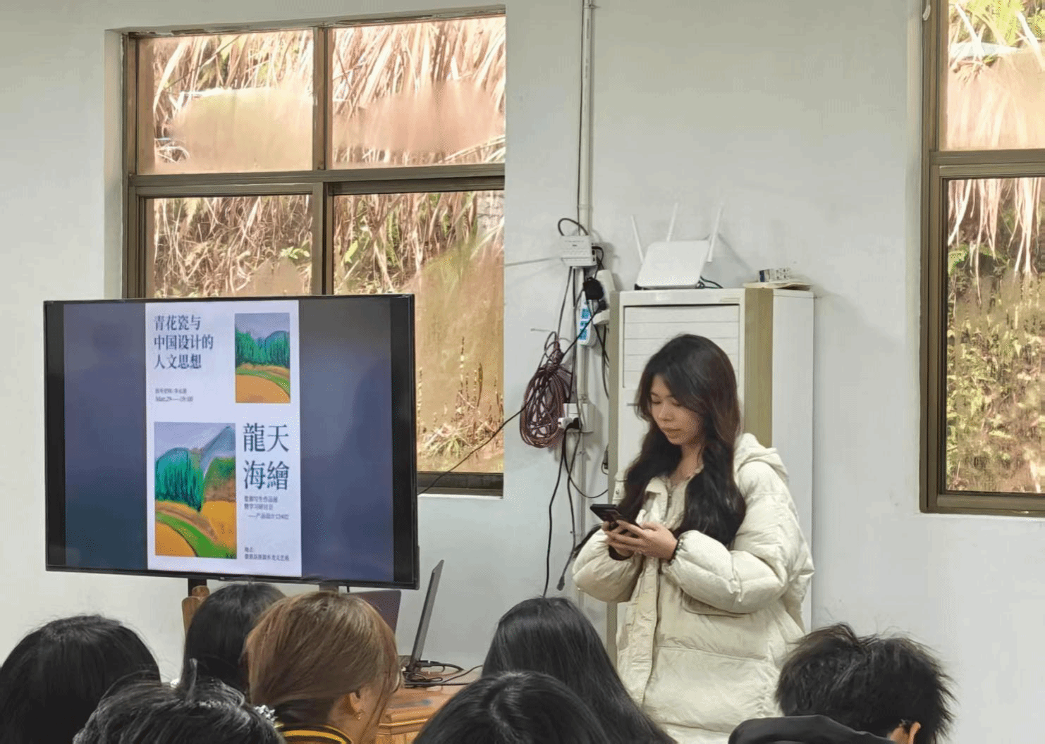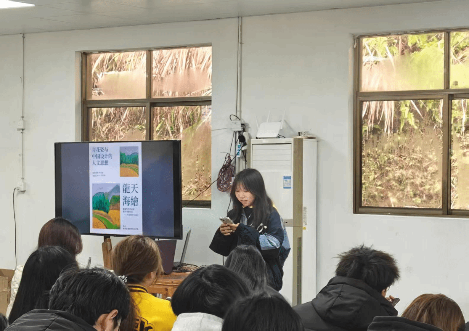 产设12402班丁广怡同学的汇报主题是青花不语,人文有生:她分享道:“这次婺源庐坑和景德镇的写生之旅,对我来说是一次艺术的洗礼和文化的寻根之旅。庐坑的自然风光和人文底蕴,为我的创作提供了丰富的素材和灵感;景德镇的陶瓷文化则让我领略到了传统技艺的博大精深和传承的重要性。在这个快节奏的时代,我们更应该珍惜这些宝贵的文化遗产,让传统艺术在现代社会中焕发出新的生机与活力。