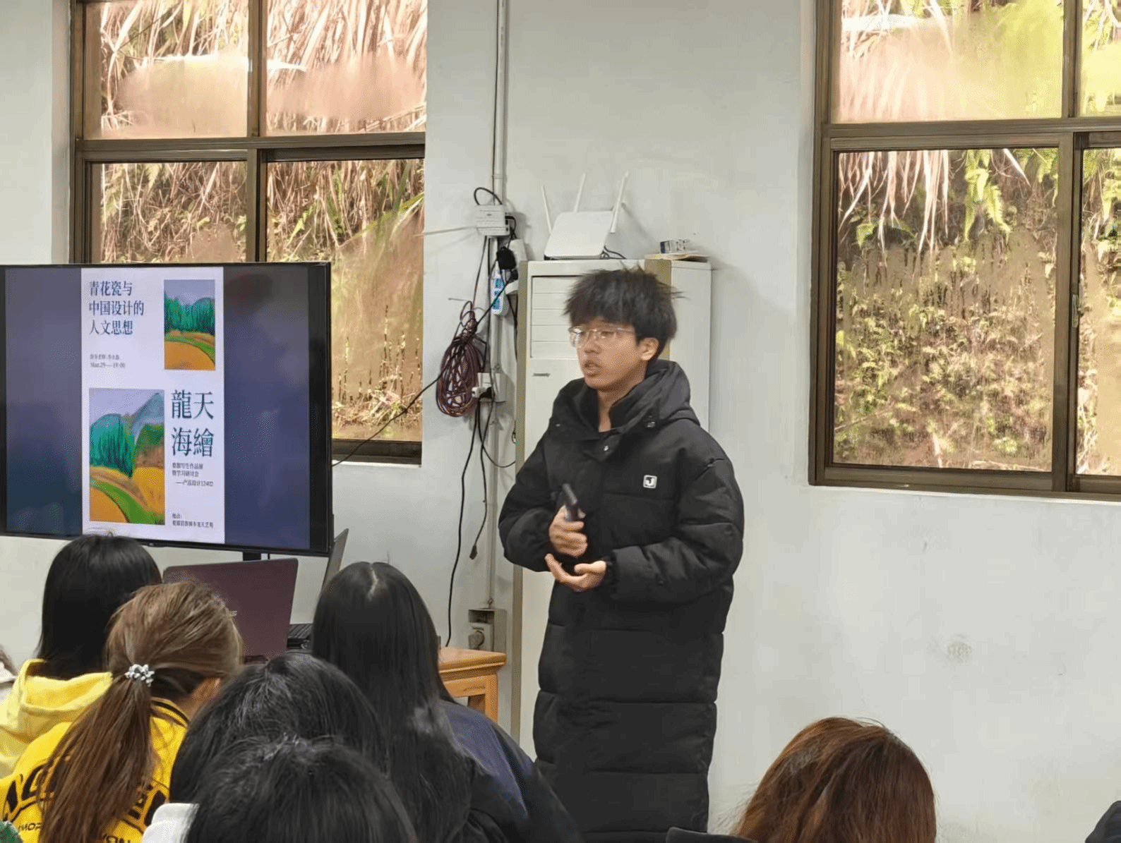 产品设计12402班李家淦同学的汇报主题是瓷中匠意:他在此次论坛分享道:"来到江西写生的我们,去到了江西景德镇的御窑,陶溪川,我们见到了工人在做瓷器时的专注,看到了瓷器在现代发展的轨迹。在陶溪川,我们见到了很多创意性的瓷器作品,符合现代人审美的茶具、瓷器玩偶、耳环、吊坠、手链,无不显示着工匠和现在技术碰撞产生的结果”。