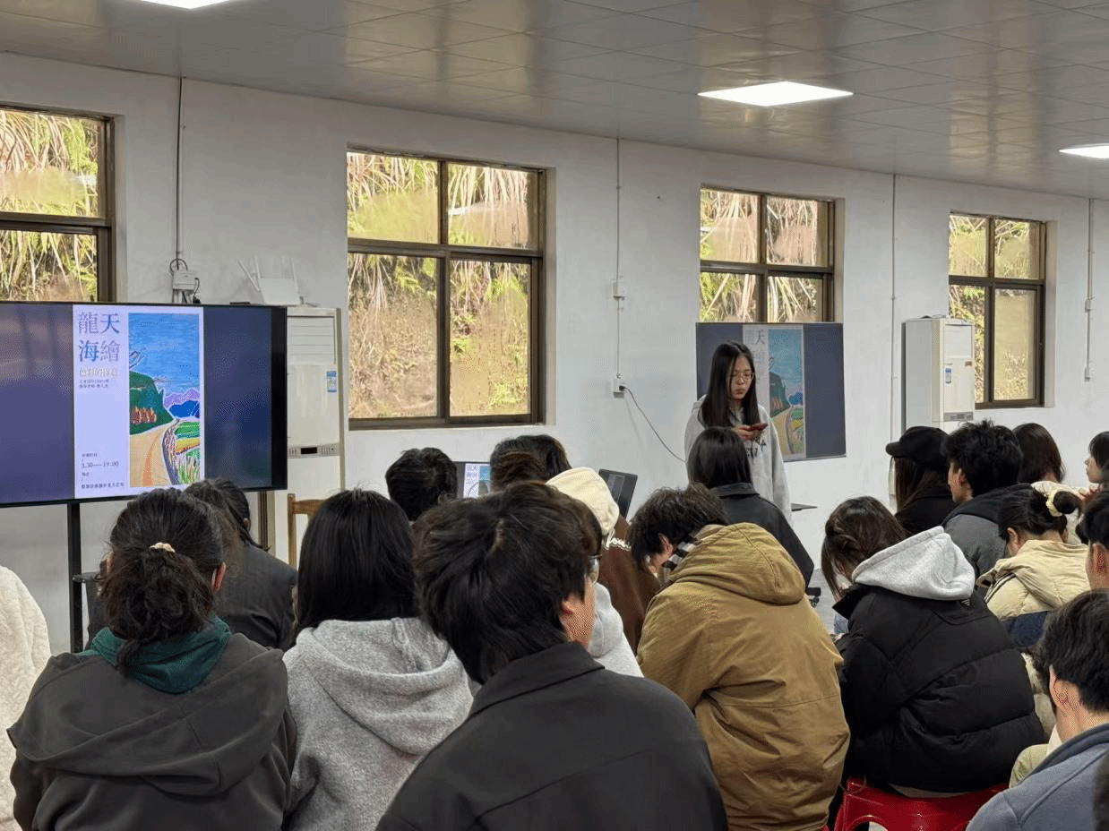 工业设计12301班孙思思同学的汇报主题是色彩里的诗意与写生感想。她用影像与速写交织的视觉语言,再现了粉墙黛瓦间油菜花海的炽烈金黄、晨雾中马头墙的氤氲青灰、溪畔浣衣妇的靛蓝围裙,展现了工科生特有的结构化思维与艺术感知的化学反应,更揭示了当代设计教育中人文情怀与技术创新融合的必要性。正如孙思思在结语中所言:"在参数化设计的时代,写生教会我们的,是用算法的笔触书写大地的诗意。"这场跨界思考的盛宴,为正在进行的跨学科艺术实践系列活动增添了浓墨重彩的注脚。