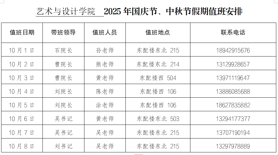百合漫画 2025年国庆节、中秋节假期值班安排