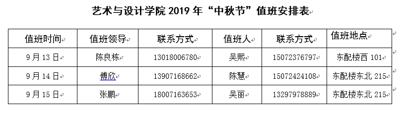 百合漫画 2019年“中秋节”值班安排表