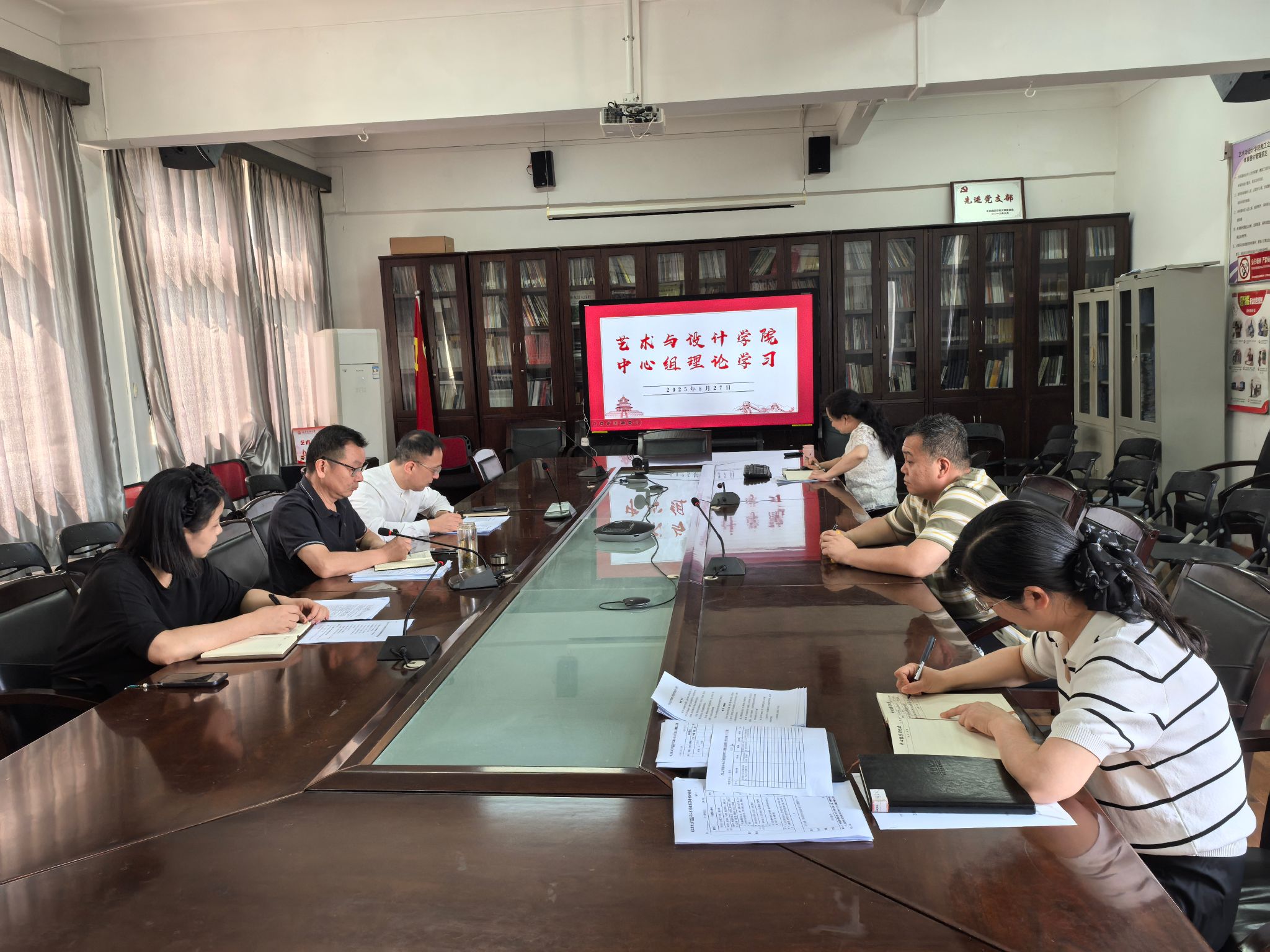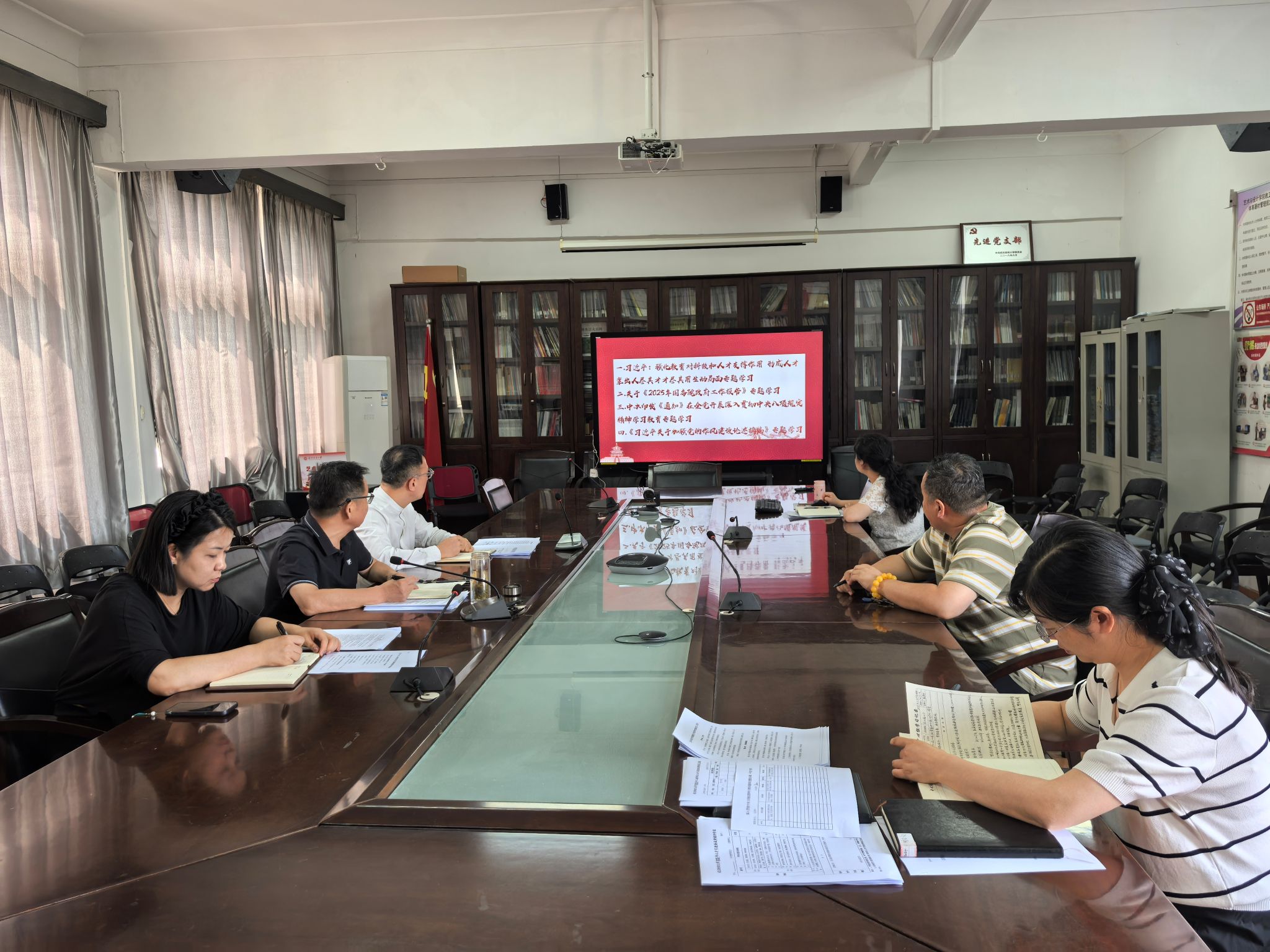 在学院会议室开展中心组理论学习。学院党委书记刘元文领学了习近平总书记在参加全国政协十四届三次会议的民盟、民进、教育界委员时重要讲话内容、《关于在全党开展深入贯彻中央八项规定精神学习教育的通知》、《习近平关于加强党的作风建设论述摘编》、《2025年国务院政府工作报告》。