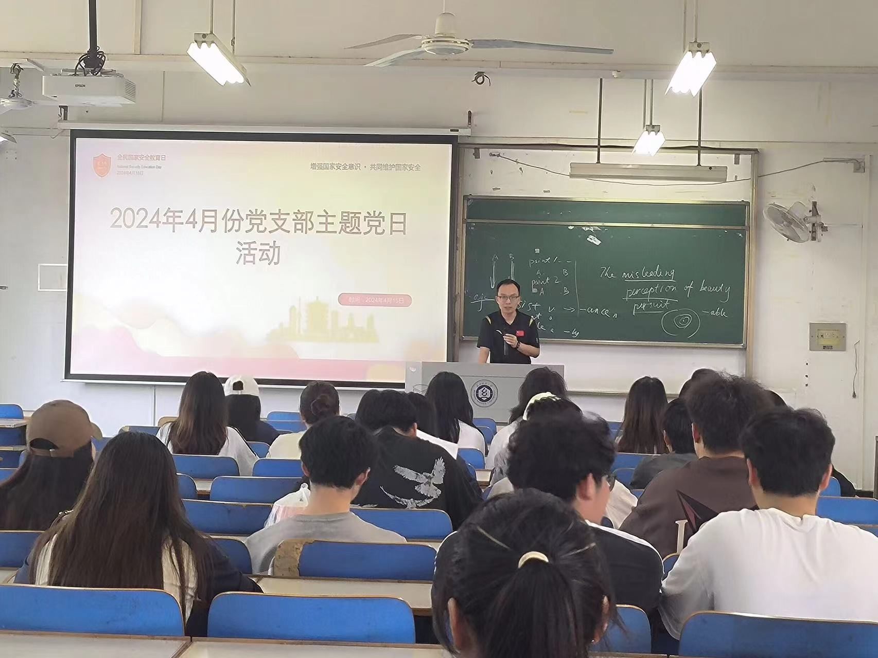 本科生学生党支部于4月15日中午在综合楼208教室开展“树牢总体国家安全观”主题党课学习,本科生第二党支部书记韩泽光进行领学,全体在校本科生党员参加学习。
