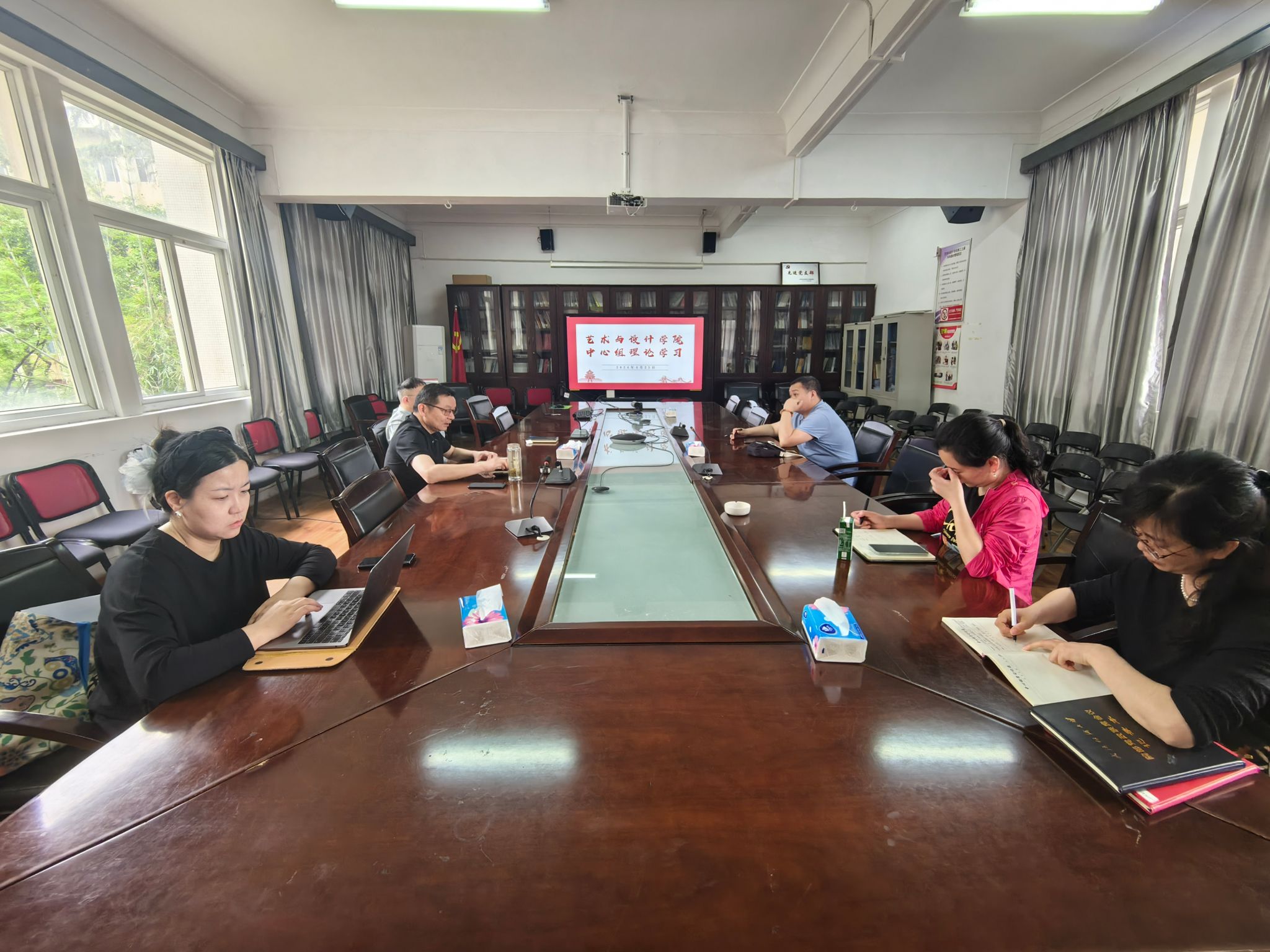 在学院217会议室开展4月份中心组理论学习,进行《关于在全校开展党纪学习教育的实施方案》、《中国共产党纪律处分条例》等专题学习。学院领导班子、党委委员参加学习会,党委书记刘元文主持。