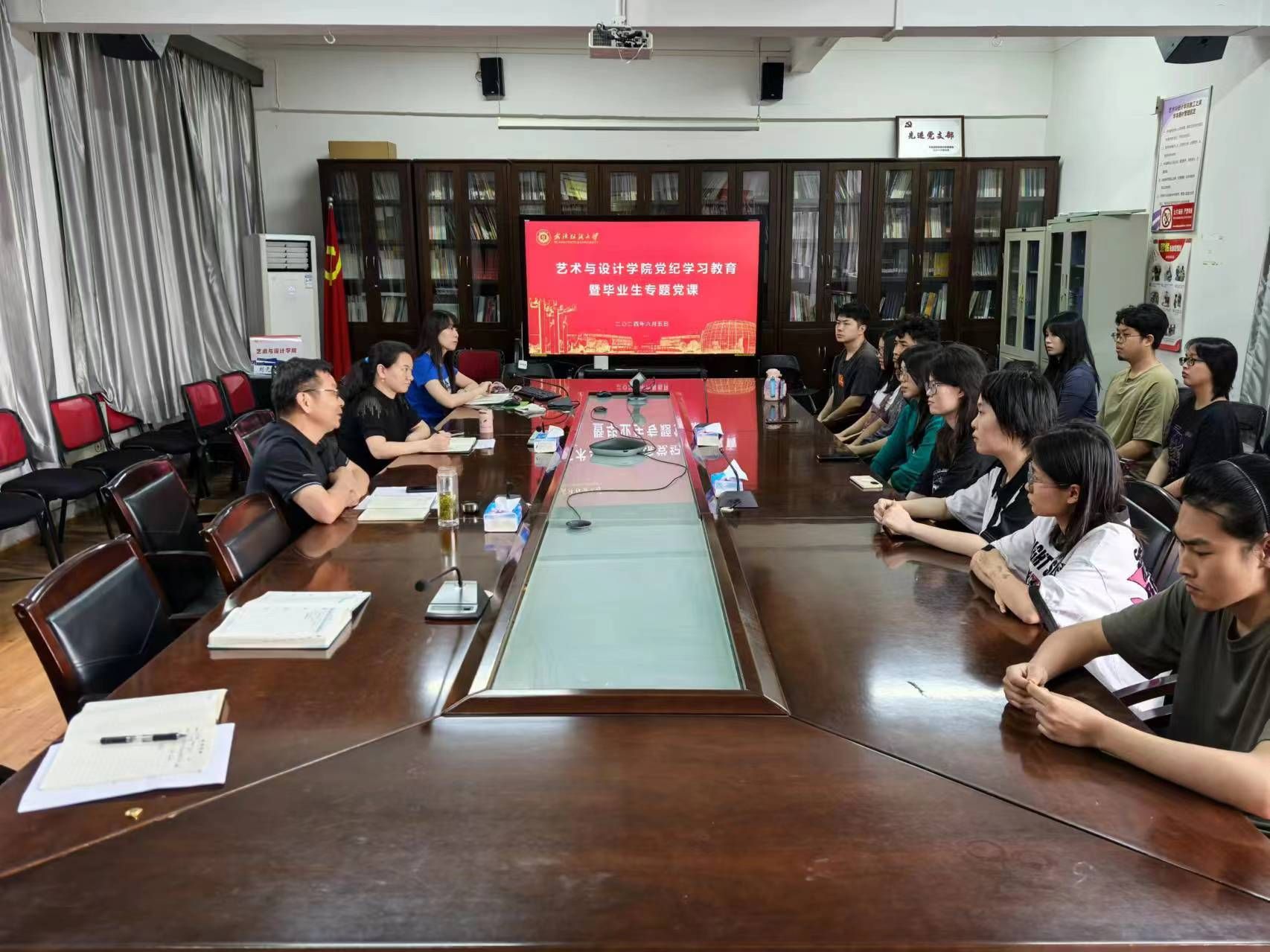 在学院二楼会议室开展“学纪、知纪、明纪、守纪”党纪学习教育暨毕业生最后一堂专题党课。学院党委书记刘元文进行主讲,研究生毕业班辅导员陈畅、本科生毕业班辅导员韩泽光、毕业生党员参加学习,党委副书记吴双主持活动。