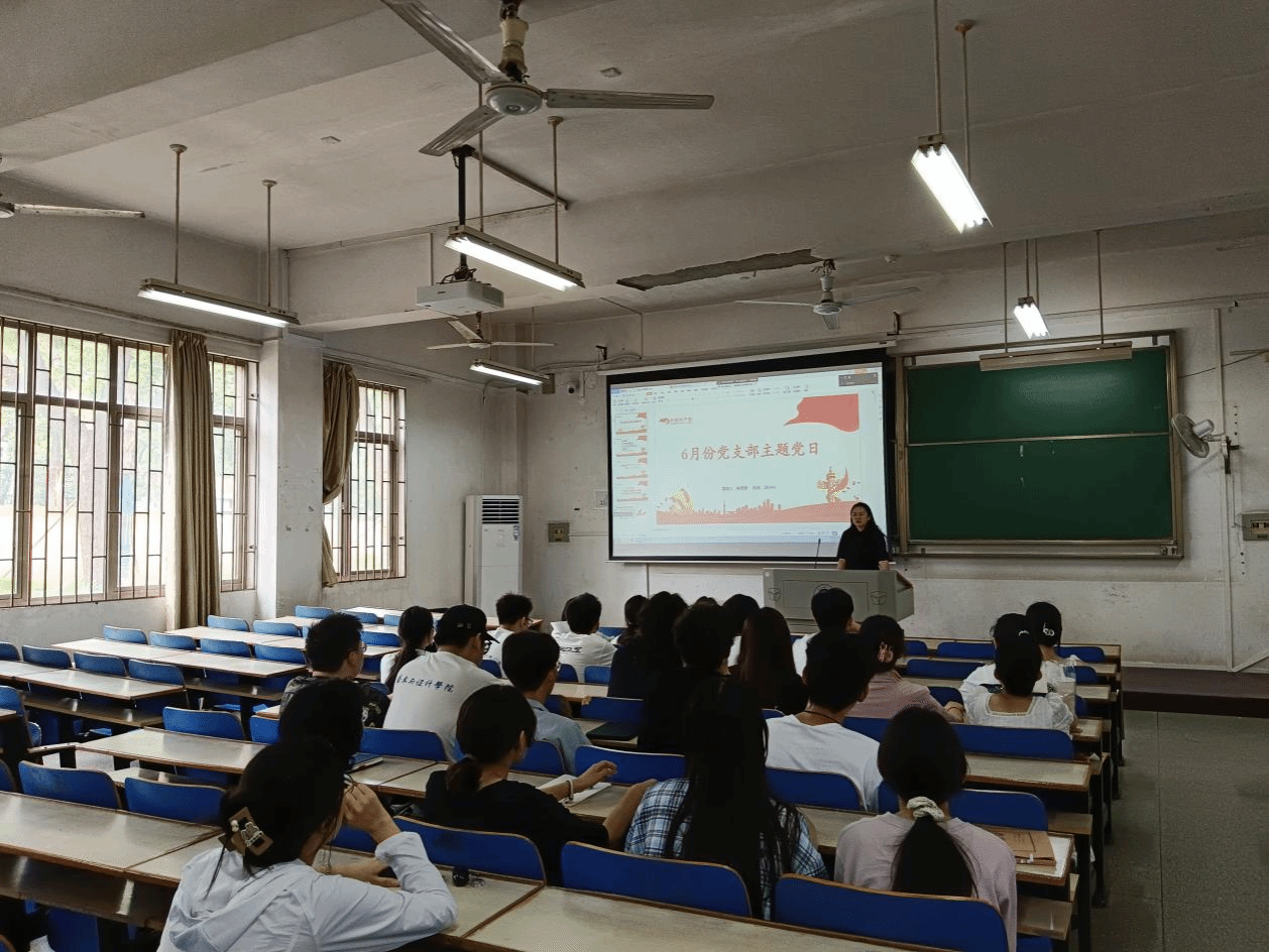 全体本科生党员于6月18日在综合楼108召开六月份主题党日活动,活动由本科生第四党支部书记熊潇潇主持。