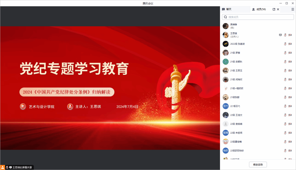 本科生第四党支部书记熊潇潇向学生党员们讲解了纪律建设的一系列重大理论和实践问题,科学回答了什么是纪律规矩、为什么要加强纪律建设、怎样加强纪律建设等重大问题。