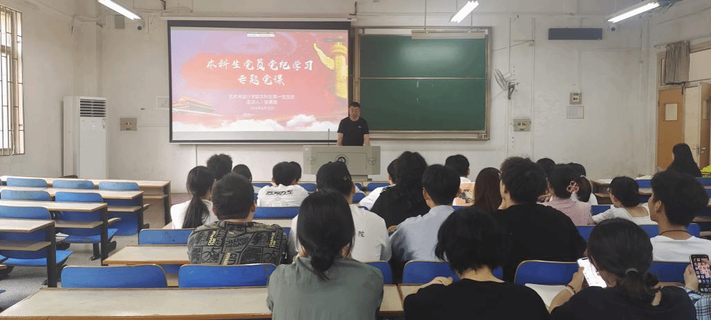 本科生第二党支部书记韩泽光开展了“学纪、知纪、明纪、守纪”党纪学习教育暨毕业生最后一堂专题党课,勉励毕业生党员要时刻铭记党员身份,牢记入党誓词,坚定理想信念,筑牢思想防线,以砥砺奋进的价值追求和昂扬的斗志踏上人生新征程,争做有理想、敢担当、能吃苦、肯奋斗的新时代好青年。