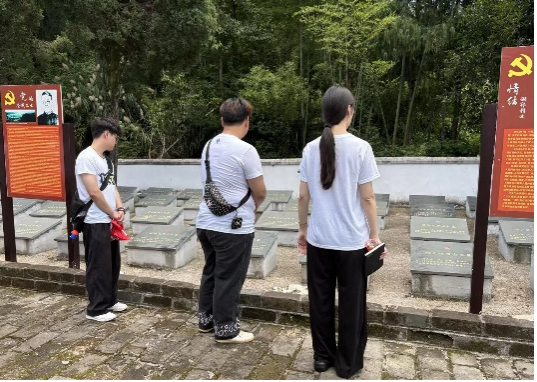 艺纺承韵社会实践团队在院团委书记陈畅老师的带领下,怀揣敬仰之心奔赴崇阳县陈寿昌烈士陵园,开展了一场主题为“赓续红色血脉,凝聚奋进力量”的沉浸式党团活动。