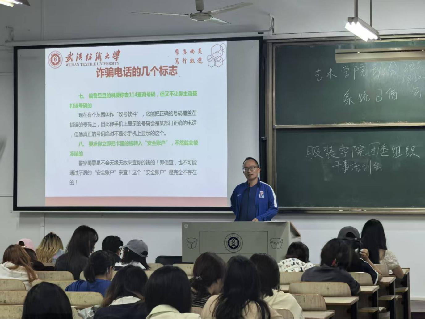 紧接着,各班会还进行了防诈反诈安全教育,结合当前高发的电信网络诈骗案例,提醒同学们务必认真核实来电身份,谨慎保护个人身份信息、银行账户等敏感资料,坚决拒绝任何形式的陌生转账要求,并再次强调如遇任何可疑情况,应第一时间联系辅导员或报警求助。
