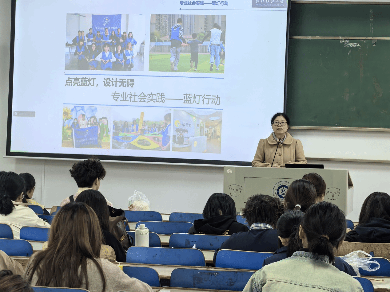 在南湖校区尚知楼5-108和5-111教室开展“点亮蓝灯,设计无碍”主题团课。本次团课由学院教师周来主讲,2025级全体新生及新发展团员参加培训。