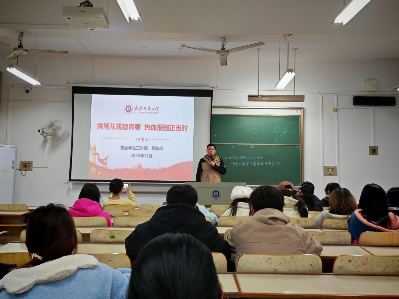 紧扣“携笔从戎砺青春 热血报国正当时”主题,面向全体学生集中开展征兵宣传 “三个一” 活动,实现大一至大四学生全覆盖,让征兵政策深入人心,让报国信念扎根校园。