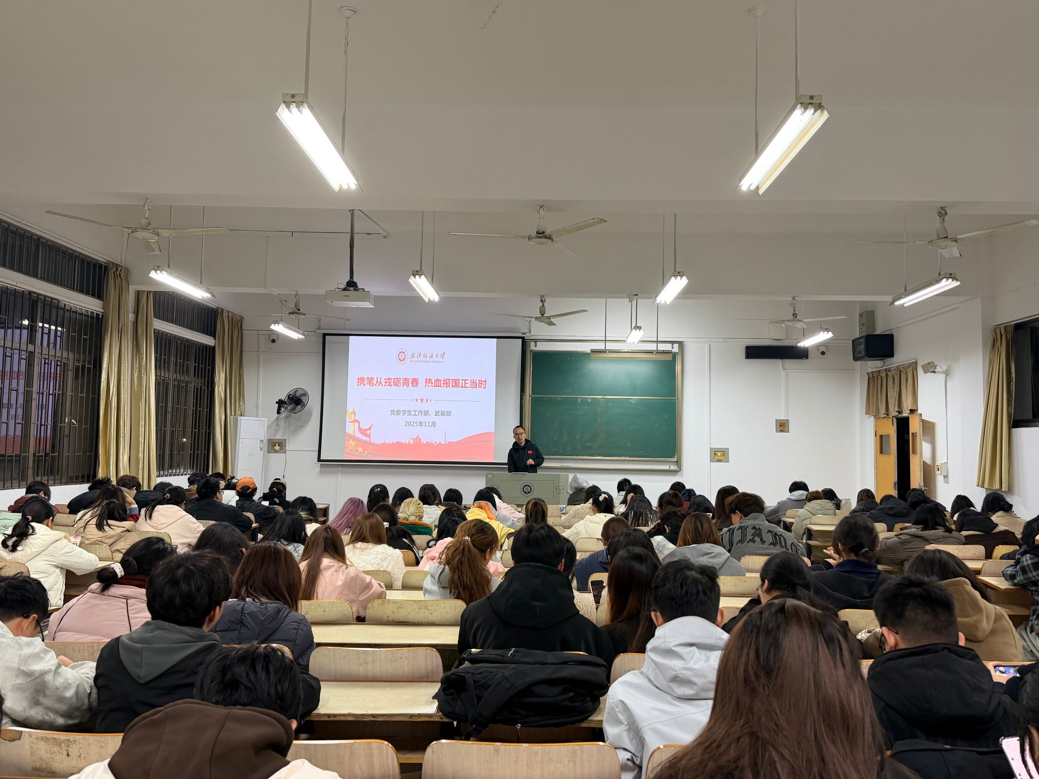 按照学校武装部统一要求,辅导员围绕2026年春季征兵条件、报名流程、优待政策、退役安置等学生关心的核心问题,进行了细致解读,重点强调了大学生入伍在学业保留、经济补助、考研升学、就业扶持等方面的专属福利。宣讲过程中,辅导员还现场解答了学生关于体检标准、服役年限、岗位选择等疑问,为有入伍意向的学生扫清认知障碍。