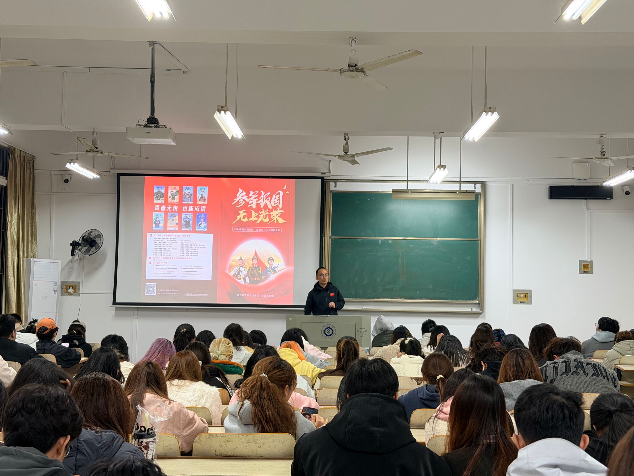 各班开展了“携笔从戎砺青春,热血报国正当时”主题晚点名班会。学院全体班主任、辅导员及全体学生共同参与此次班会。