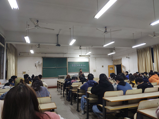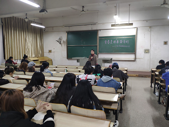 2018级在南湖校区综合楼110召开了题为“青春是用来奋斗的”期中总结大会,2018级全体学生出席了大会,大会由2018级辅导员漆晚霞老师主持。