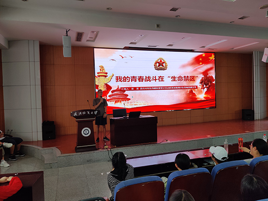 随后,来自2016级环境设计11603班的梁赏同学将自己在兵役期间的生活、工作和学习作了分享。梁赏同学将兵役期间的点点滴滴制做成一部短视频,介绍了阿里地区的自然风貌、作业环境、以及他和战友之间的身后友情,从他的言谈举止中可以感受到他的使命感和自豪感。梁赏同学向同学们透露如果有机会他还想再次参军,回到部队的生活之中,积极投入到祖国的建设中去。