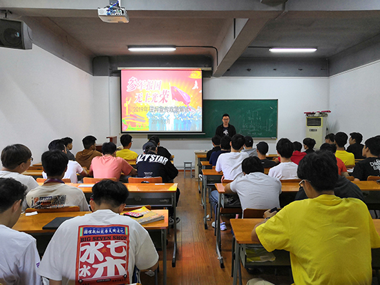 学院党委副书记张鹏对国家征兵相关政策及大学生应征入伍注意事项进行了详细解读。随后来自环艺11603班的班长梁赏同学作为退役军人向学院的男生分享了他参军入伍期间的经历。通过观看他亲手制作的退伍纪念光盘,和同学们一起回忆了他两年部队生涯的点点滴滴。他说,在军营中的两年里,他学到了许多,在西藏边防连任职期间,自己的思想、生活、学习和工作等方面都有了重新认知,这些改变是由内向外的一种自然流露。部队的两年生活是他青春肆意挥洒的两年,给他的内心带来了一些质的改变,而他的人生经历也由此五彩斑斓起来。