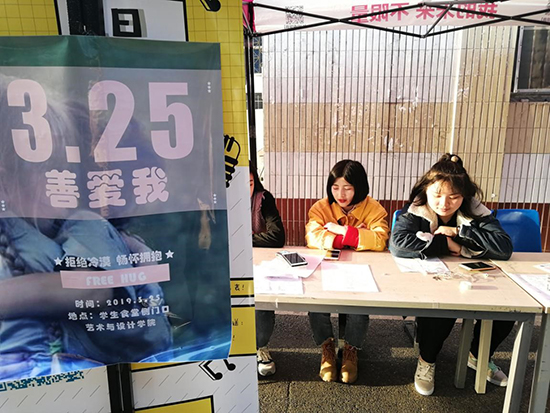 在南湖校区举办了325·善爱我系列活动之“拒绝冷漠 敞怀拥抱”活动。