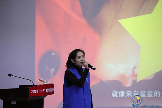 活动现场,我校蓝灯志愿团代表作为省优秀志愿服务队进行项目展示,团队通过视频讲述9年来,蓝灯志愿者陪伴自闭症孩子的故事,以及帮扶家长过程中的经历与收获,真挚的感情、无私奉献的情怀和爱心感动了所有在场的人.来自中建三局的工地“留守小候鸟”防侵害亲子安全教育项目、武汉铁路职院的“小桔灯”服务春运“暖冬行动”项目和襄阳草草义工协会等四个团队分别作为优秀项目展示。活动期间,发布了《湖北省星级青年志愿者资质认证管理办法(试行)》、 青年志愿者代表发出了学雷锋倡议,分享了志愿服务中的心路历程,相关领导为青年志愿服务队授旗。