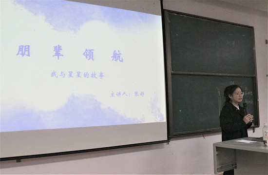 蓝灯志愿团团长张好为新生们分享了她与星星的故事。