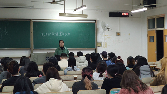 4月18日晚上7点,在综合楼109教室,艺术学院举办了大一到大三年级全体寝室长会议,来自学院三个年级的百余名寝室长参加了大会,大会由漆晚霞老师主讲。