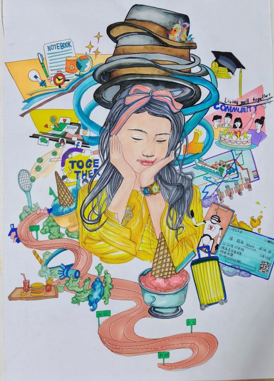 活动收到来自全校的绘画、设计作品近150副,同学们以大学生活与个人经历、体验为创作背景,通过绘画的艺术形式表达自我、展示自我,从多个层面诠释自己对心理健康的理解和对成长的解读,向老师和同学们描绘了他们心中的“世界”。